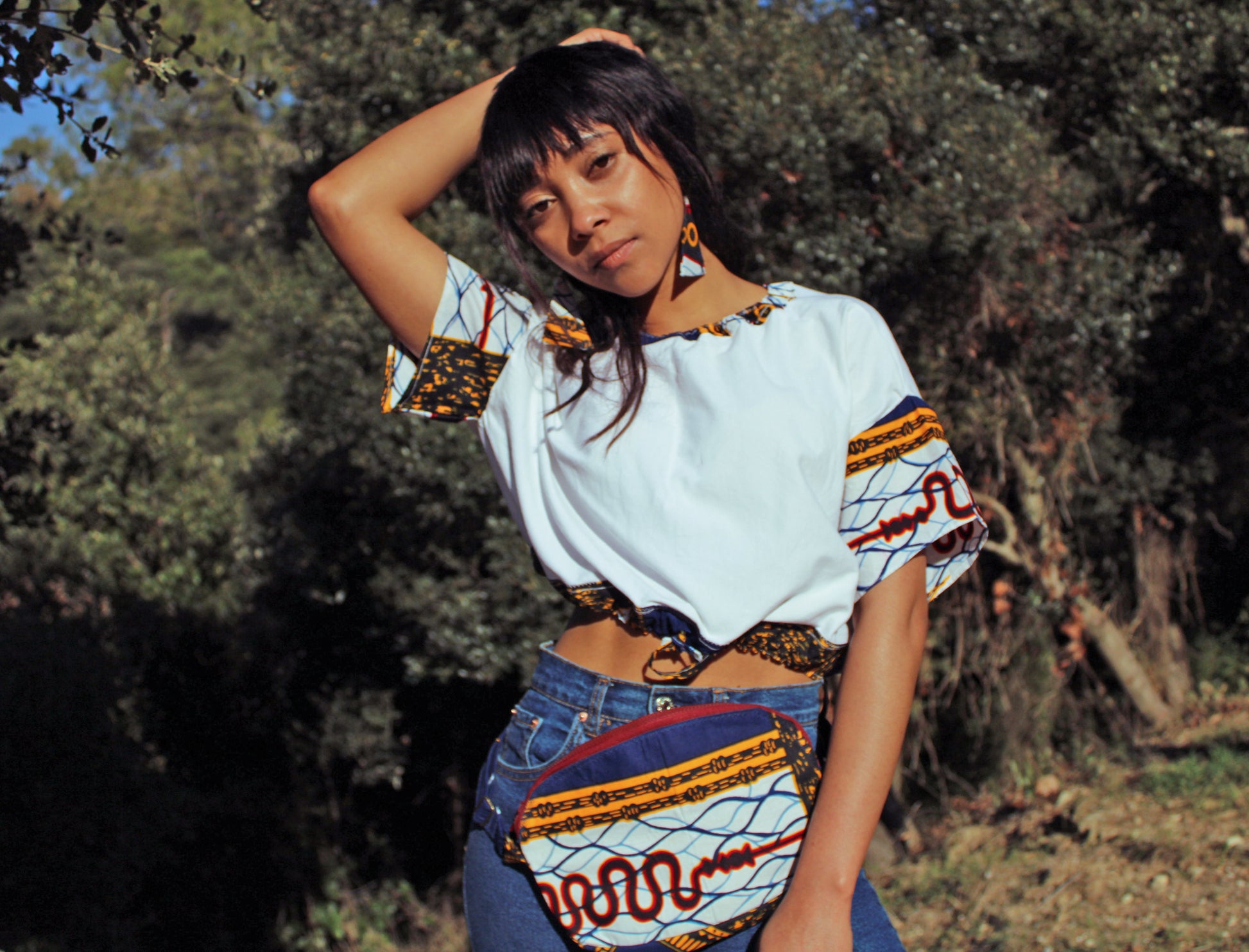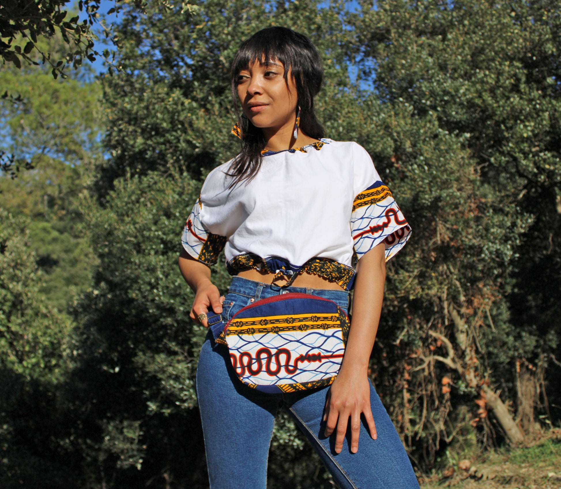 Camiseta de manga corta con estampado en Wax de algodón 100% disponible con su bolso bandolera/riñonera